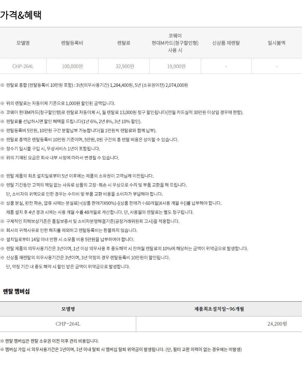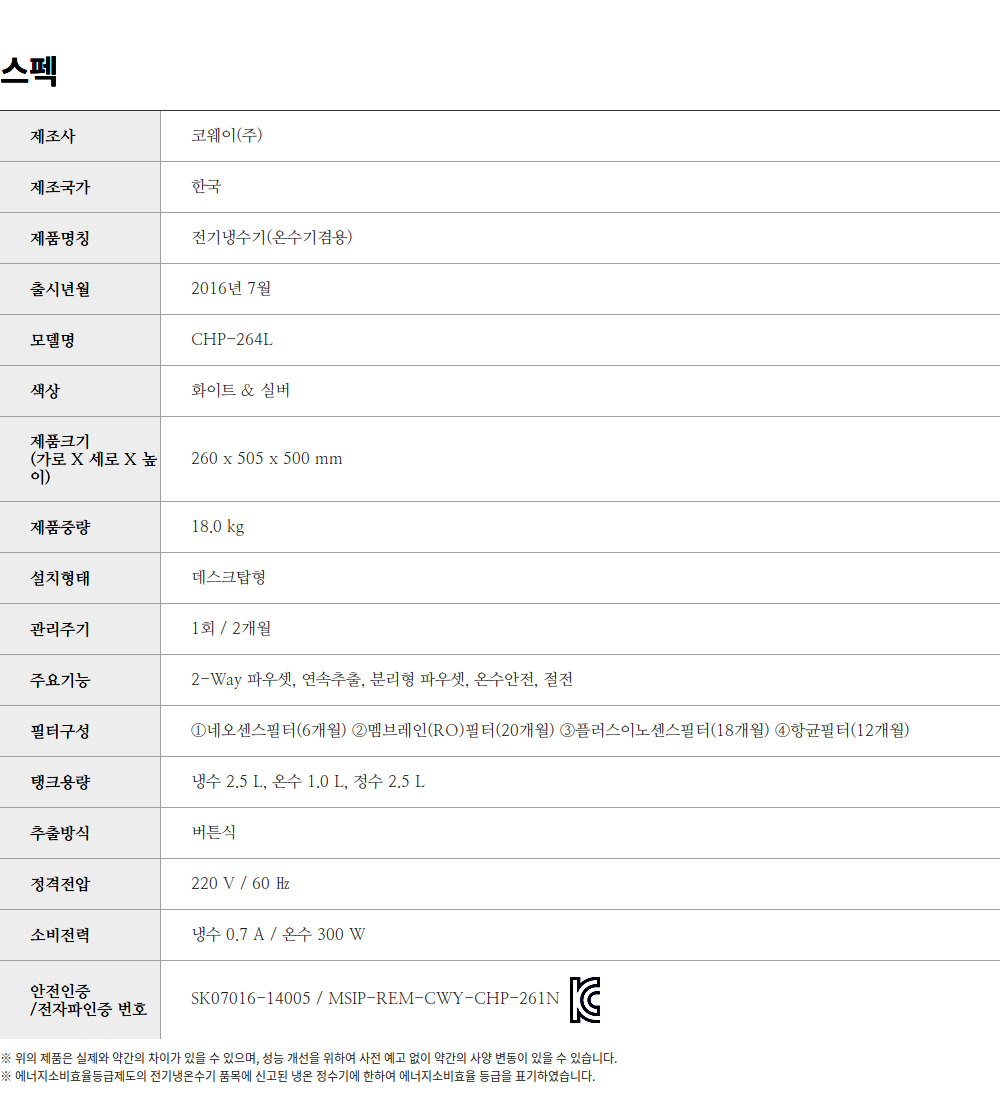 [코웨이] 노블 냉온정수기 한뼘 세로 데스크탑 6가지 색상