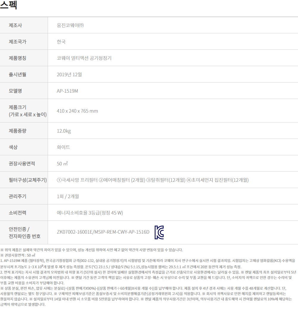 [SK매직] 올클린 공기청정기(15평형)[자가관리]