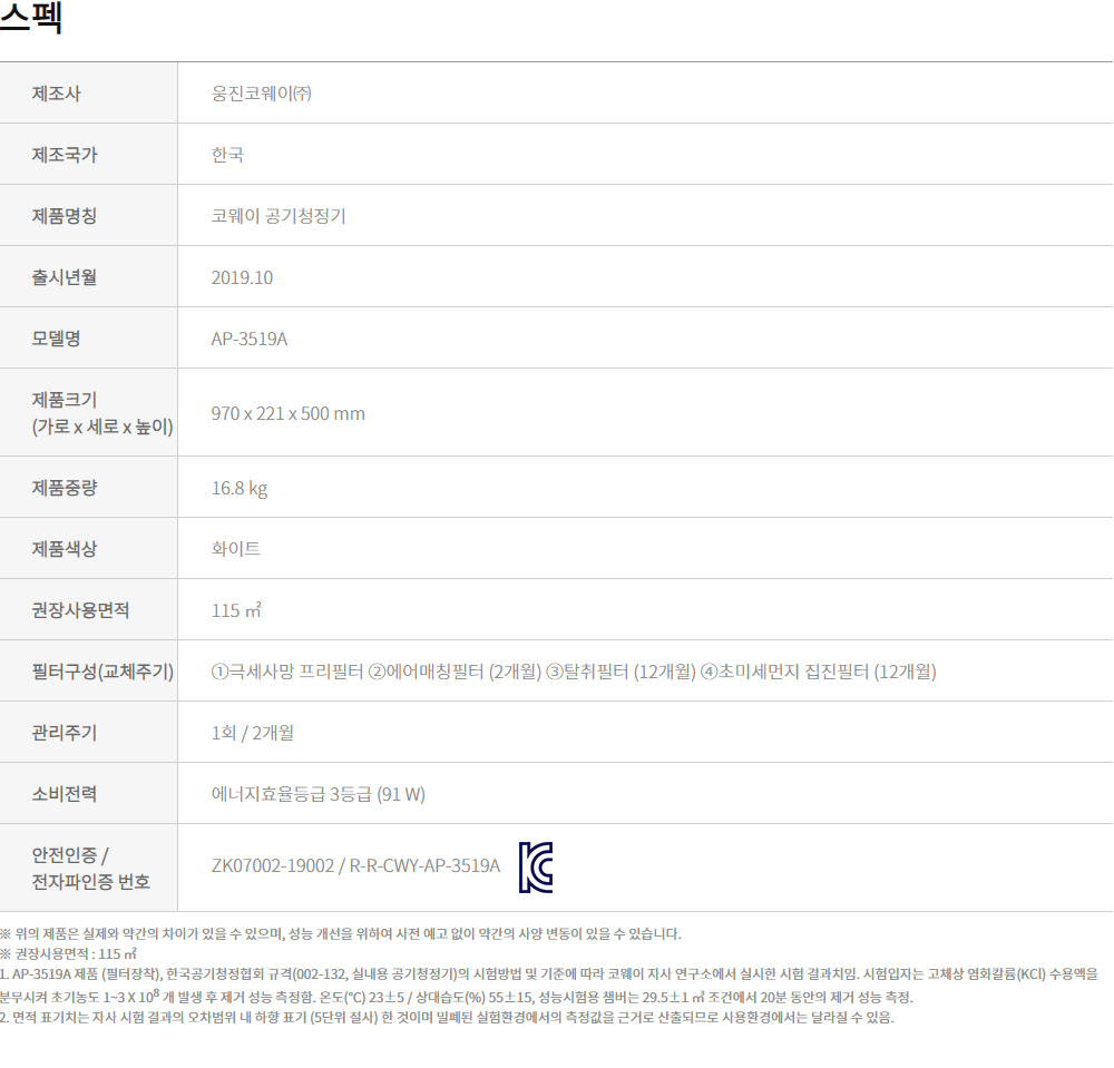 [SK매직] 올클린 공기청정기(15평형)[자가관리]