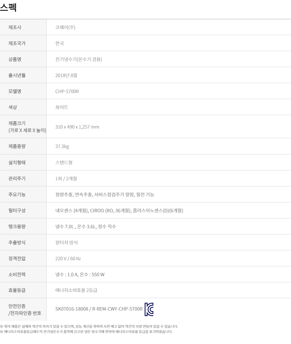 • [코웨이] 시루직수 워터 스탠드(대용량) CHP-5700R
