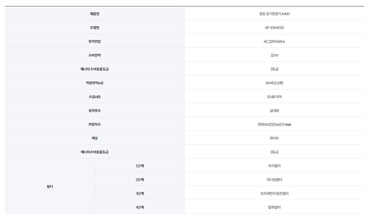 • [청호나이스] 공기청정기 A400 (시판전용) AP-10H4030