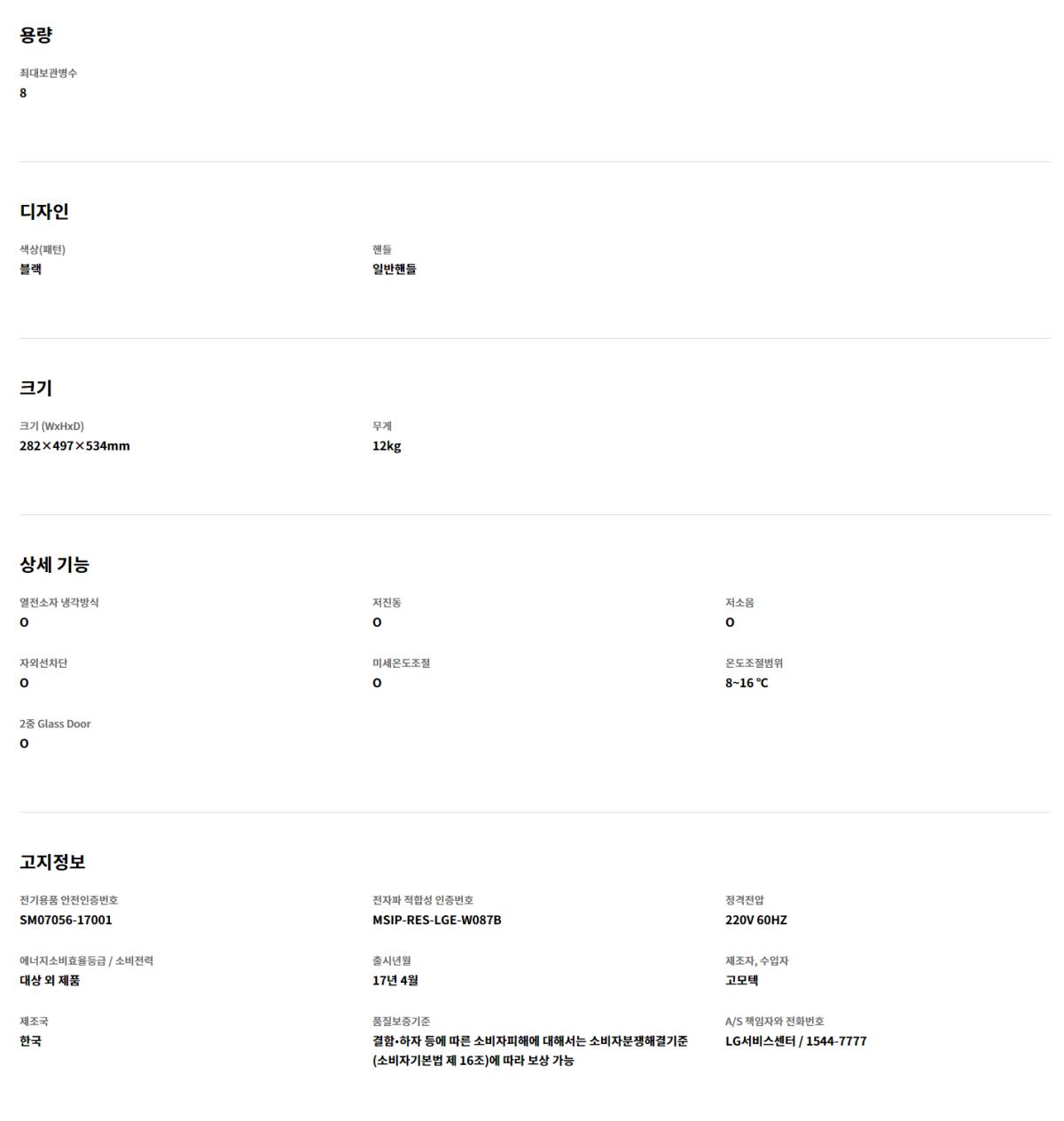 • [LG전자] 디오스 미니 와인셀러 8병 블랙 W087B