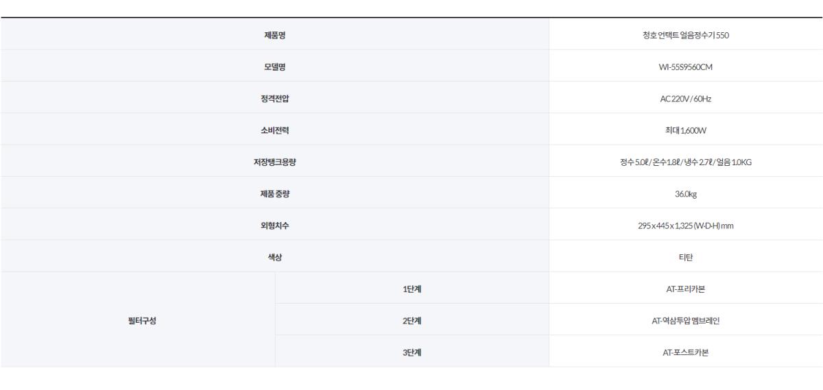 얼음1kg 냉수2.7l 온수1.8l 정수5.0l