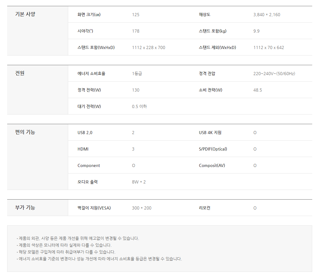 • [대우/위니아] TV 50인치 스마트 UHD WTUN50E1SKK
