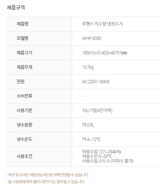 • [루헨스] 직수형 냉정수기 자가관리 WHP-3030