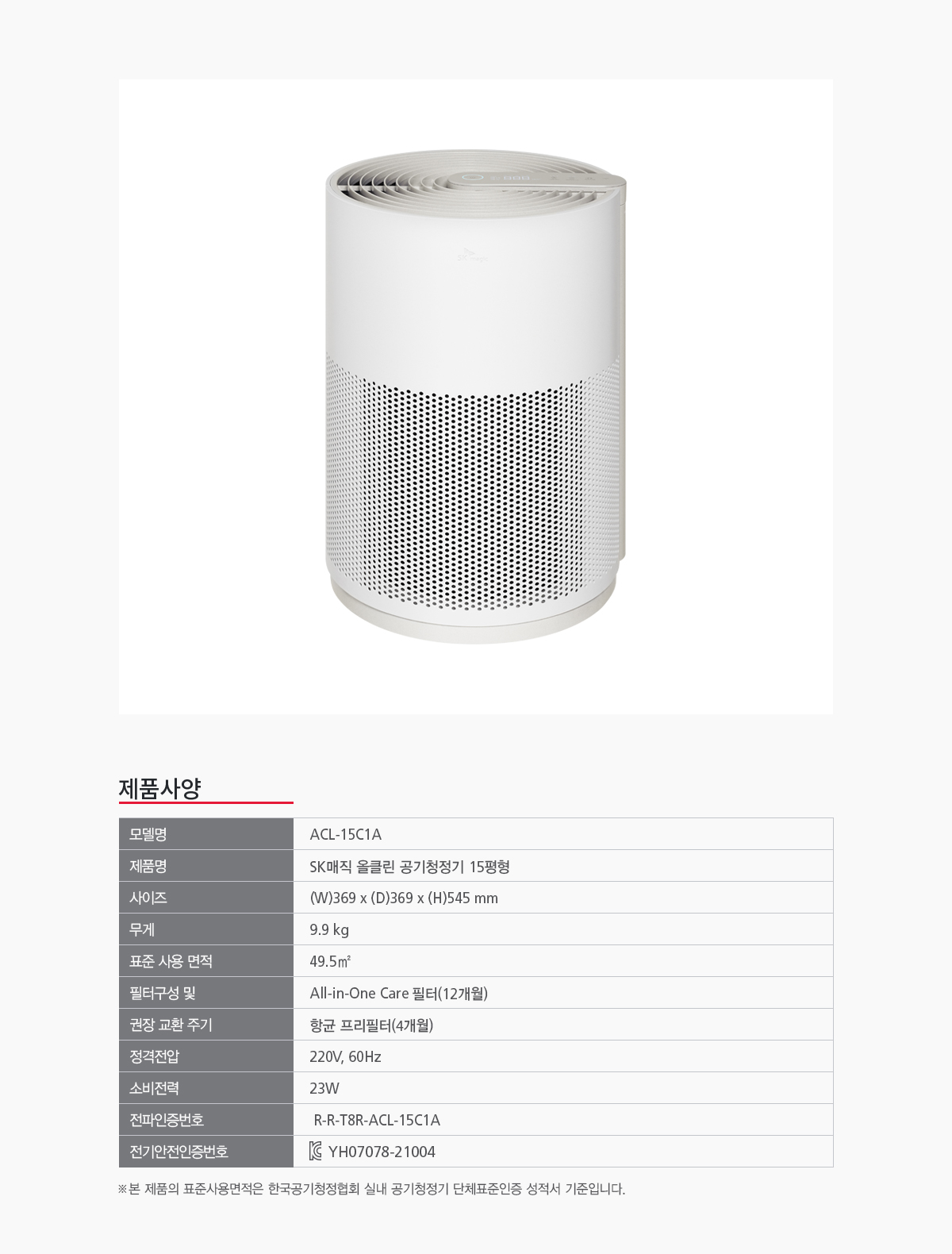 [SK매직] 올클린 공기청정기(15평형)[자가관리]
