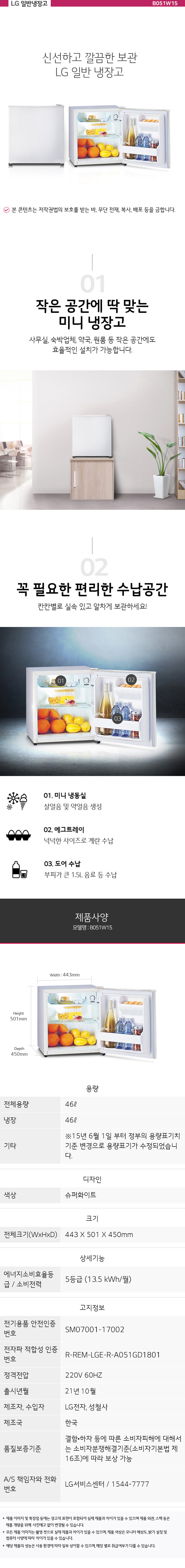 • [LG전자] 미니냉장고 46L 화이트 B051W15