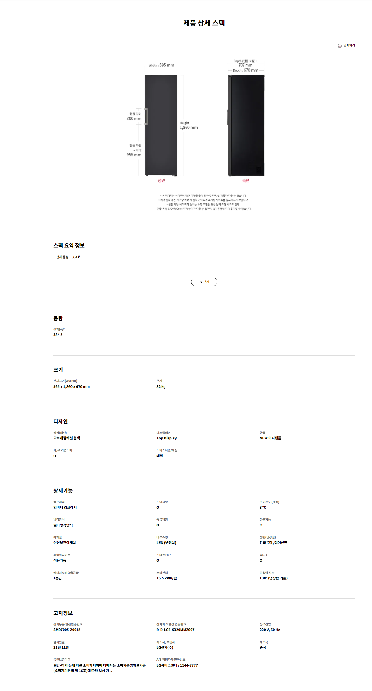 • [LG전자] 컨버터블 오브제 컬렉션 냉장고 384L 블랙 X321MB3S