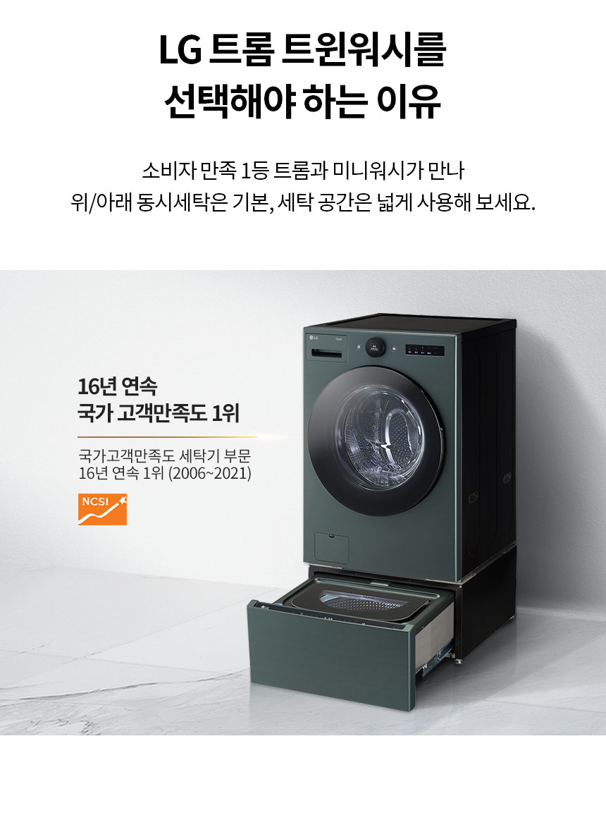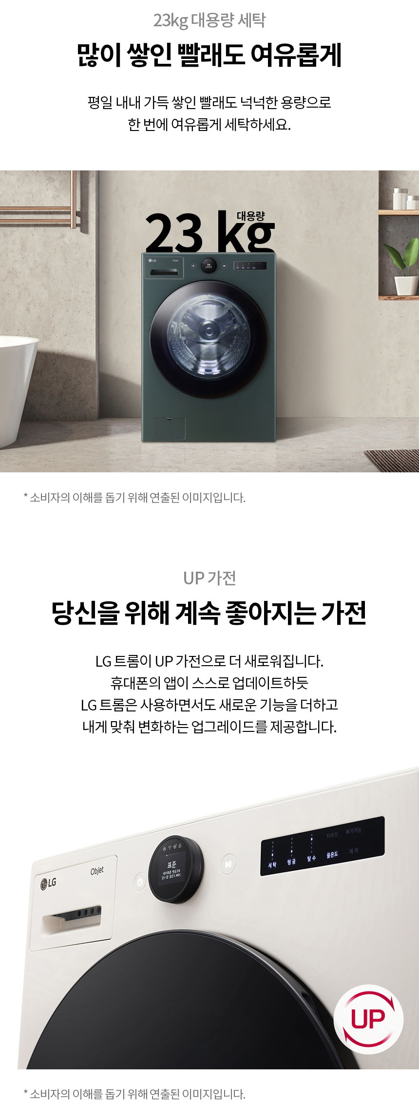 • [LG전자] 2022 뉴트롬 트윈워시 오브제 세탁기 23kg+미니워시 4KG 베이지 FX23ENX