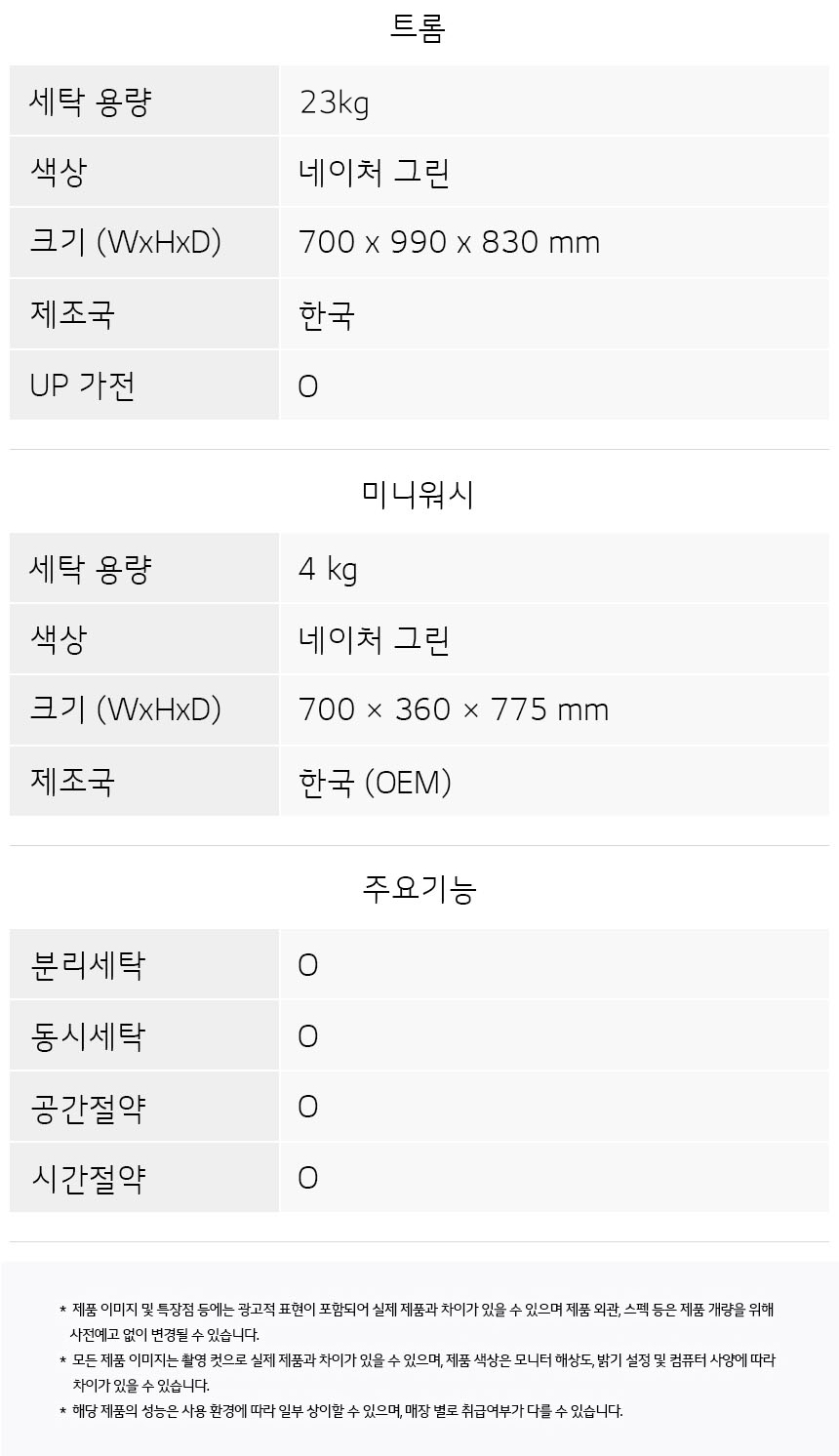• [LG전자] 2022 뉴트롬 트윈워시 오브제 세탁기 23kg+미니워시 4KG 네이처그린 FX23GNX