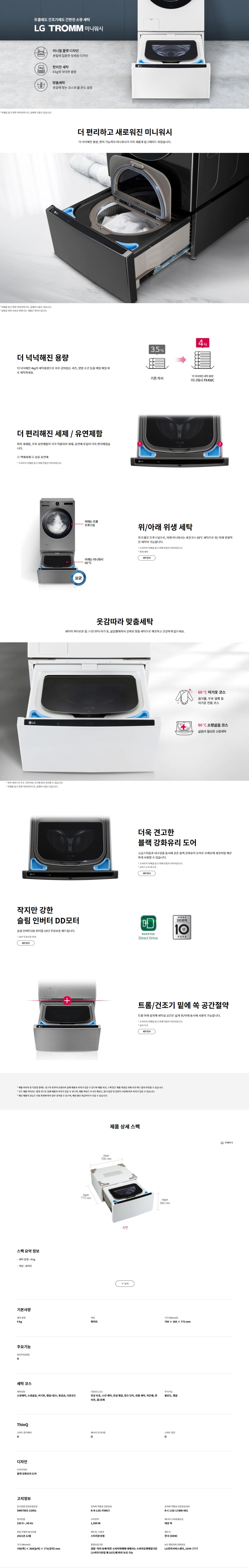 • [LG전자] 트롬 미니워시 오브제컬렉션 4kg 화이트 FX4WC