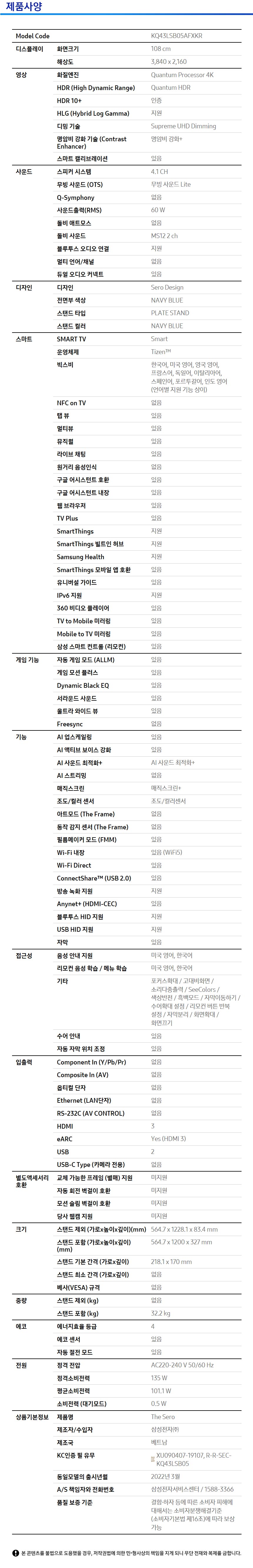 • [삼성] The Sero 네이비 블루 더세로 43인치 TV KQ43LSB05AFXKR