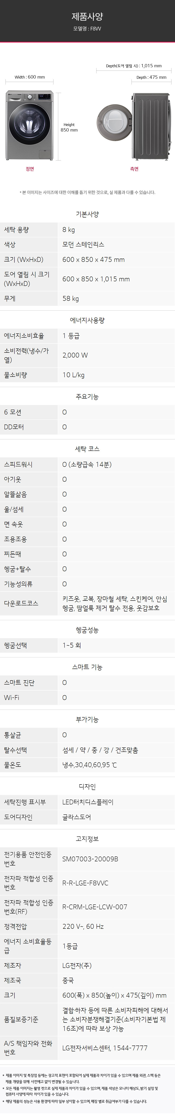 • [LG전자] 꼬망스 플러스 세탁기 8kg 모던 스테인리스 F8VV