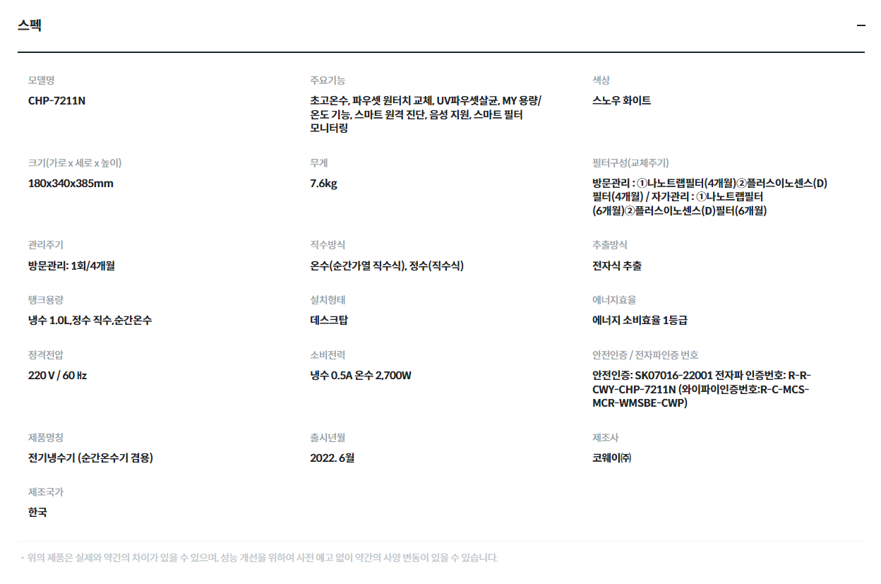 [코웨이] 아이콘 스탠드 냉온정수기