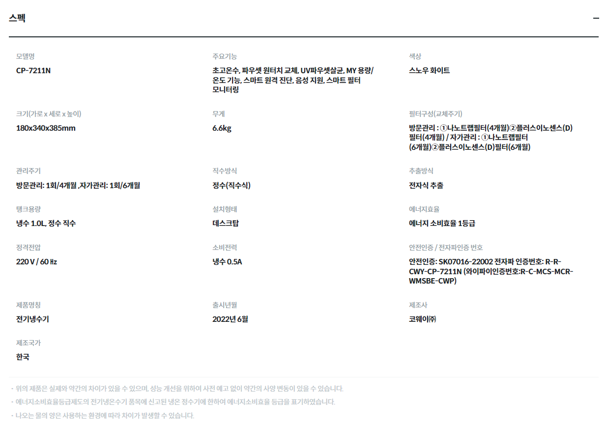 [코웨이] 노블 냉온정수기 한뼘 세로 데스크탑 6가지 색상