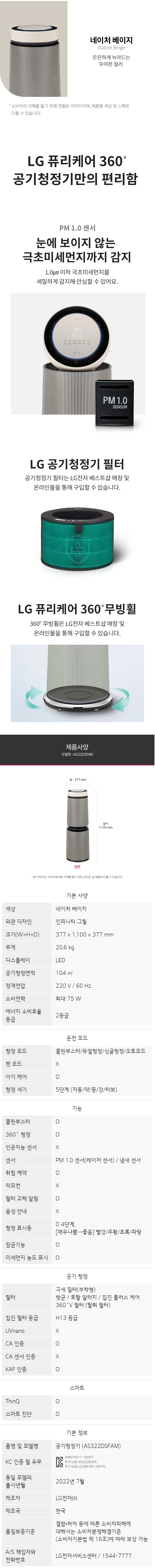 [코웨이] 노블2 공기청정기(53㎡) AP-1623M (포슬린화이트,샌드베이지,임페리얼브라운,페블그레이,가든그레이)