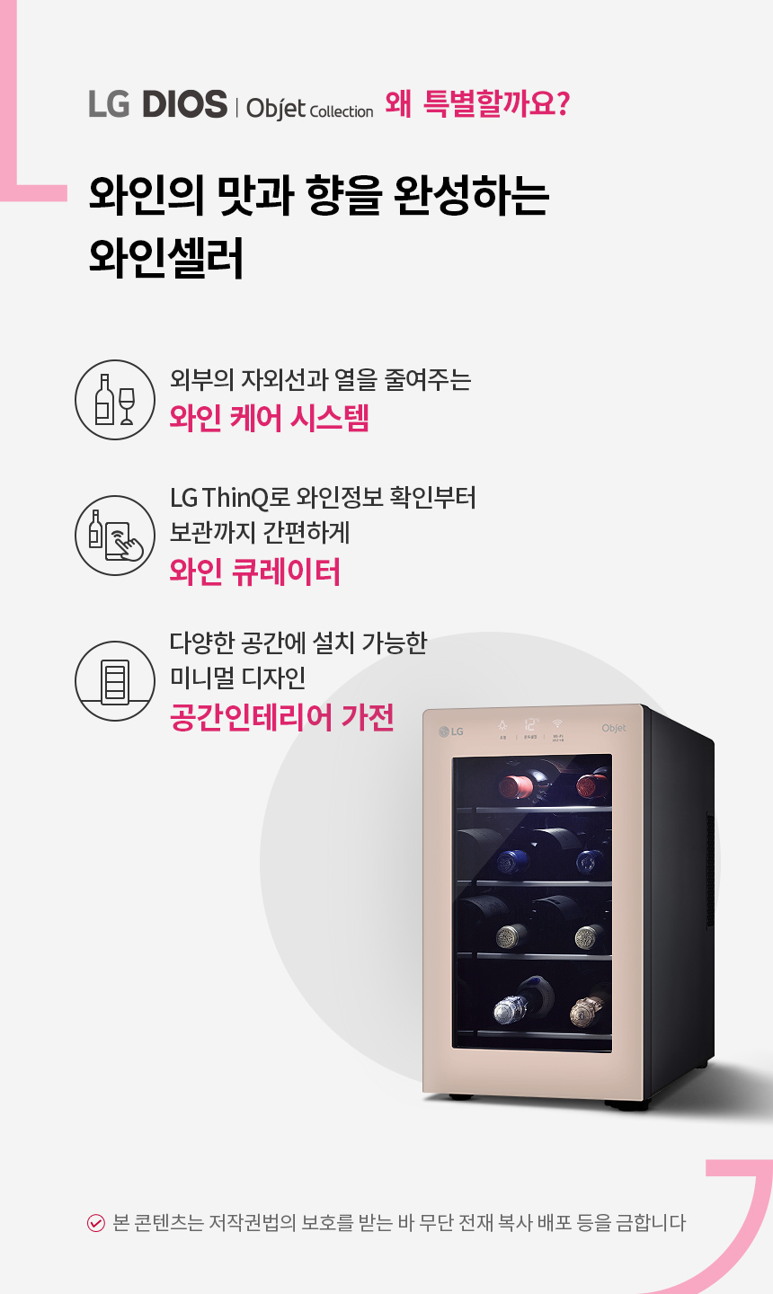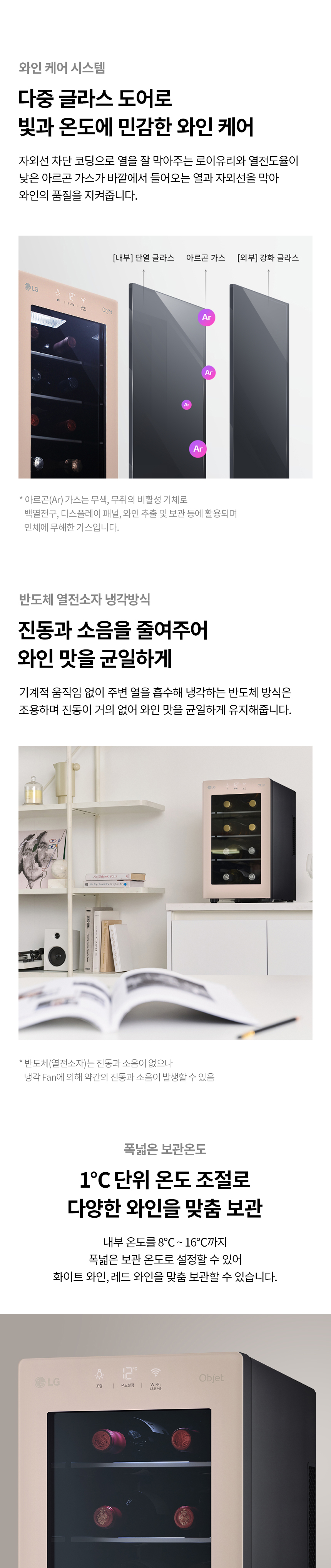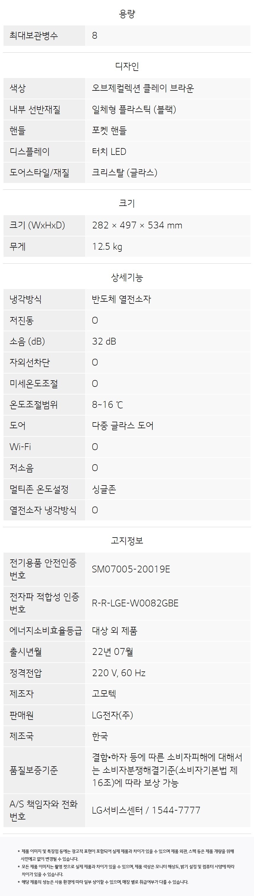 • [LG전자] 디오스 오브제컬렉션 와인셀러 최대8병보관 클레이브라운 W0082GCB