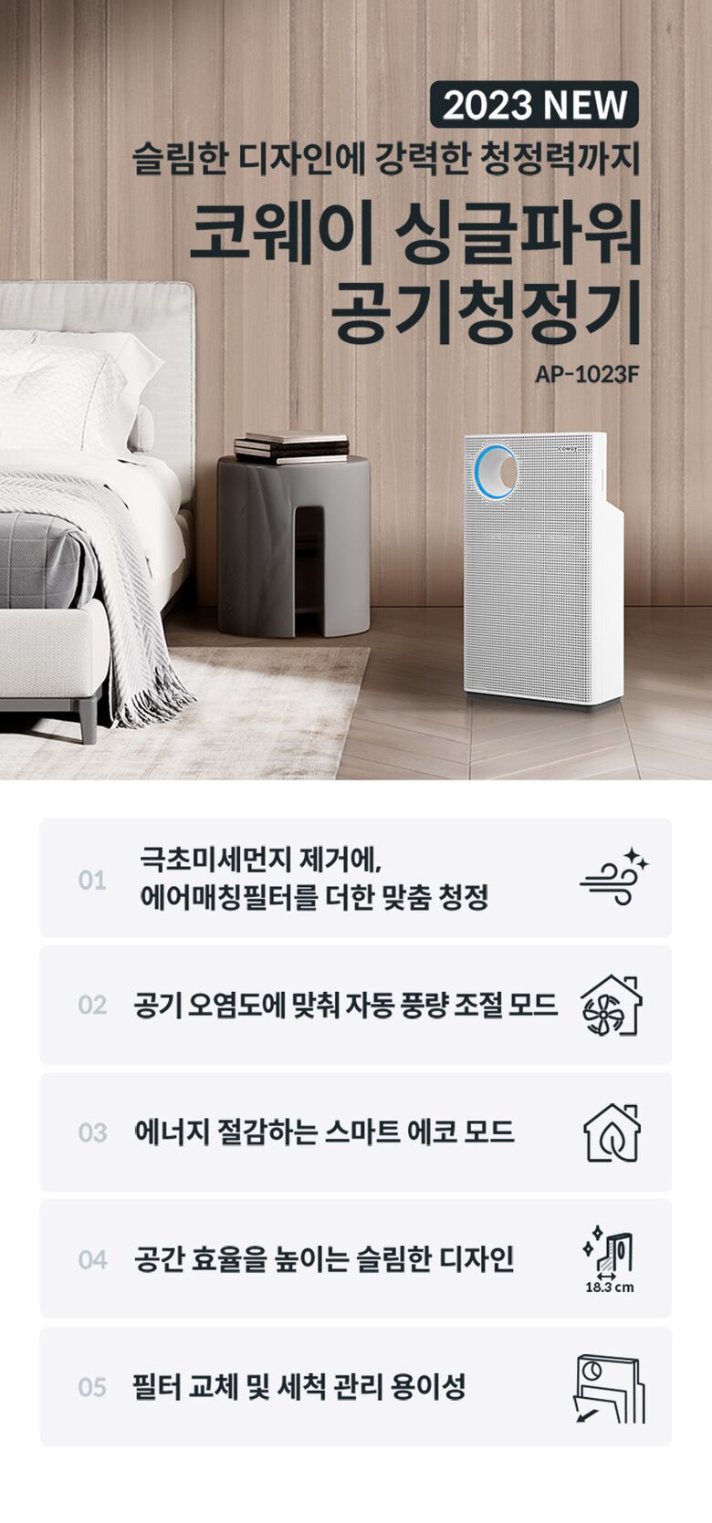 [코웨이] 노블2 공기청정기(53㎡) AP-1623M (포슬린화이트,샌드베이지,임페리얼브라운,페블그레이,가든그레이)