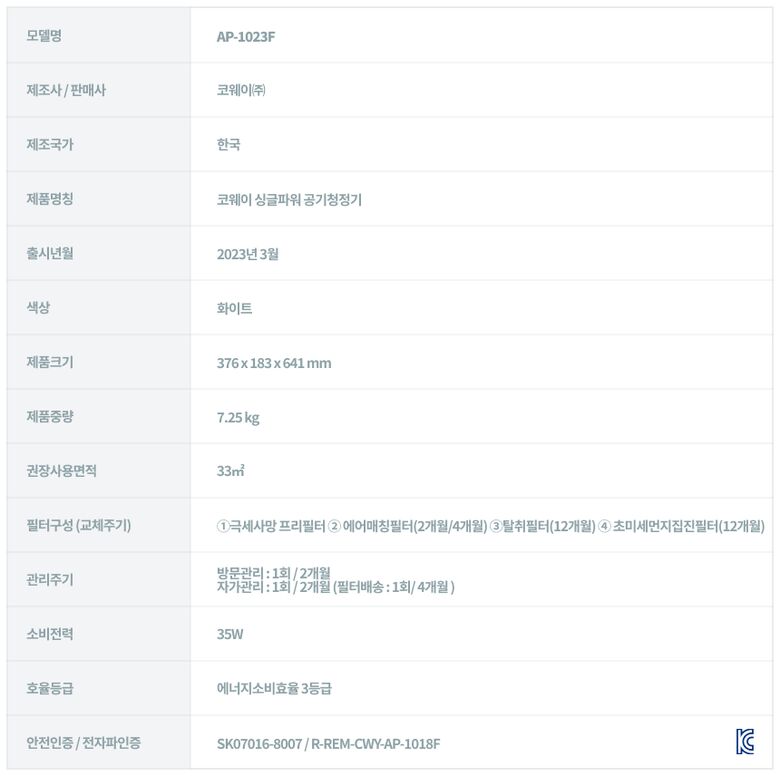 [SK매직] 올클린 공기청정기(15평형)[자가관리]