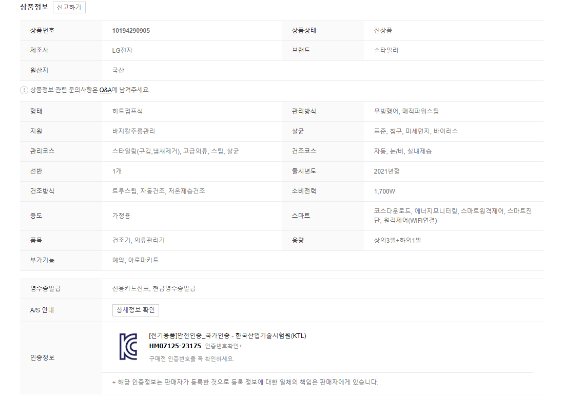 • [LG전자] 스타일러 오브제컬렉션 5벌+바지 1벌 SC5MBR43