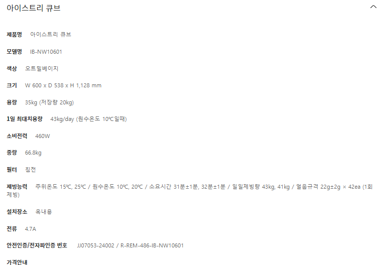 • [청호나이스] 아이스트리 큐브 IB-NW10601